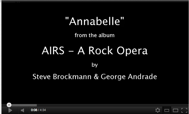 Video-Single "Annabelle": ![]() Alle Songs anhören auf www.airs-arockopera.com i AIRS - A Rock Opera NOW I KNOW 1. Fateful Days 2. Grounded 3. Kites 4. Flight 5. CURRENT EVENTS - Winds of Change - Heirs - Winds of Change II - Errs BOOK OF AIRS 6. History (instrumental) 7. Heritage 8. Experiments 9. Floating (instrumental) THE FLYER 10. Annabelle 11. The Center 12. Fateful Days II 13. Hannah AIRS 14. The Great Salt Pond 15. Grounded II 16. Kites II 17. Flight II 18. OWEN |